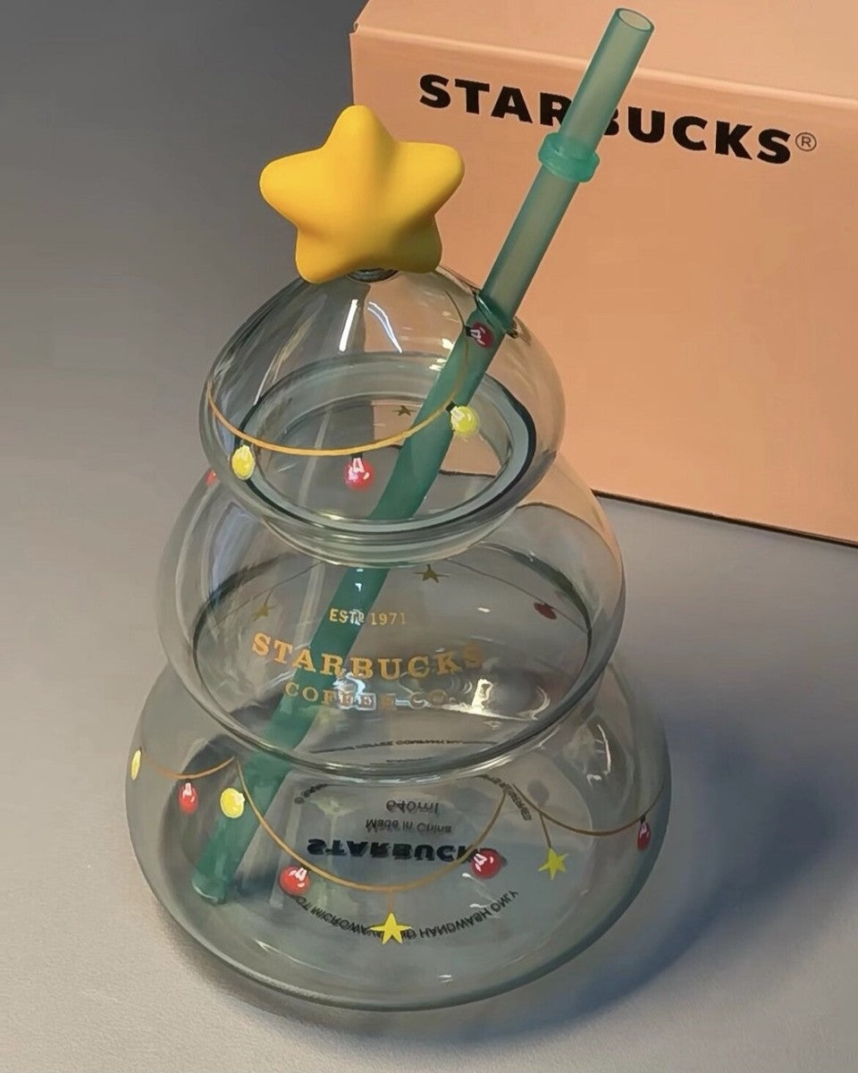 Starbucks*Christmas Tree 22oz Glass Straw Cup Tumbler Xmas